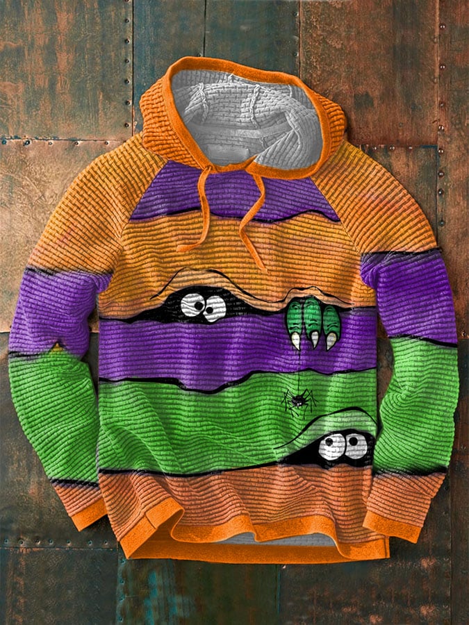 Men's Halloween Color Block Waffle Halloween Peek Monster Print Sweatshirt