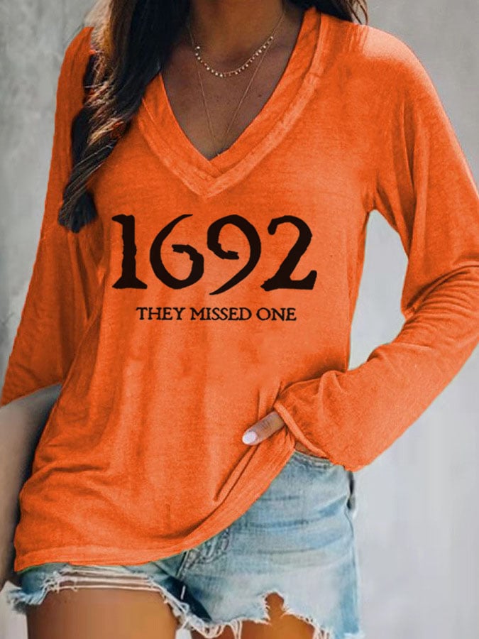 Women's 1692 They Missed One Salem Witch Casual V-Neck Long-Sleeve T-Shirt
