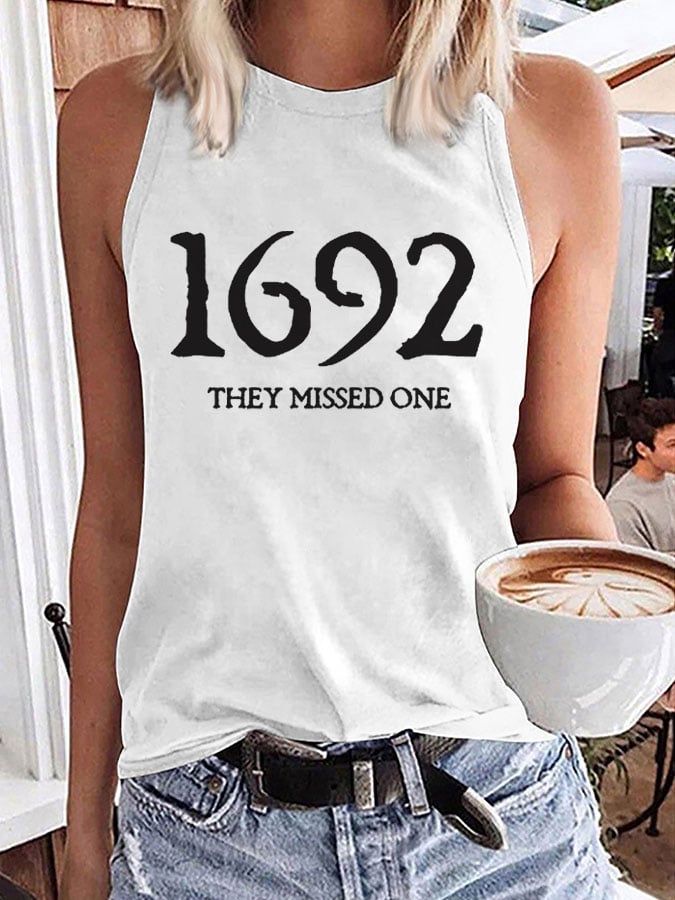 Women's 1692 They Missed One Salem Witch Print Sleeveless T-Shirt