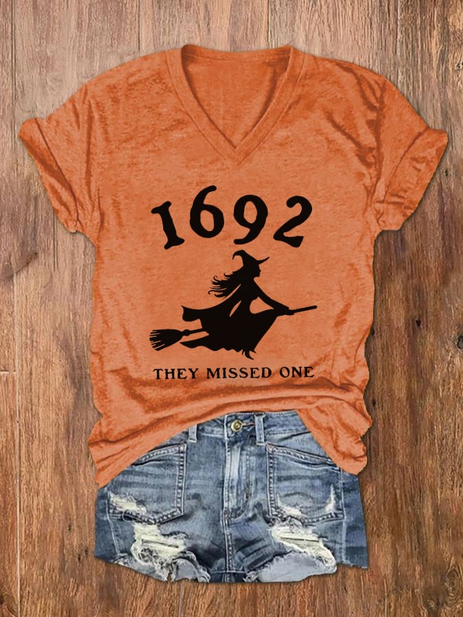 Women's 1692 Witch They Missed One Print V-Neck T-Shirt