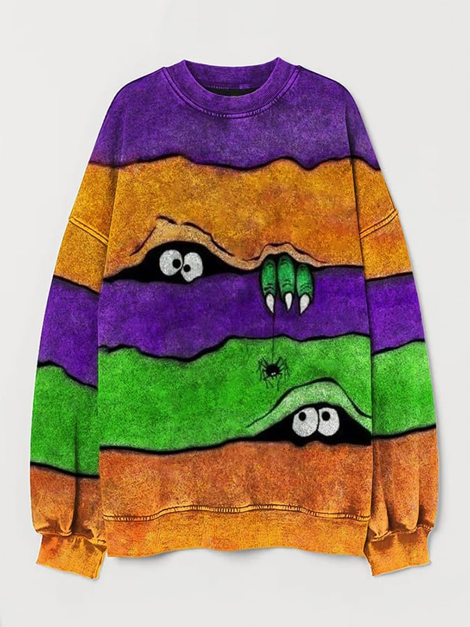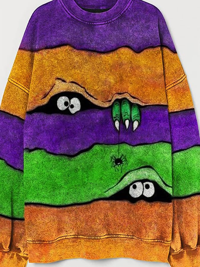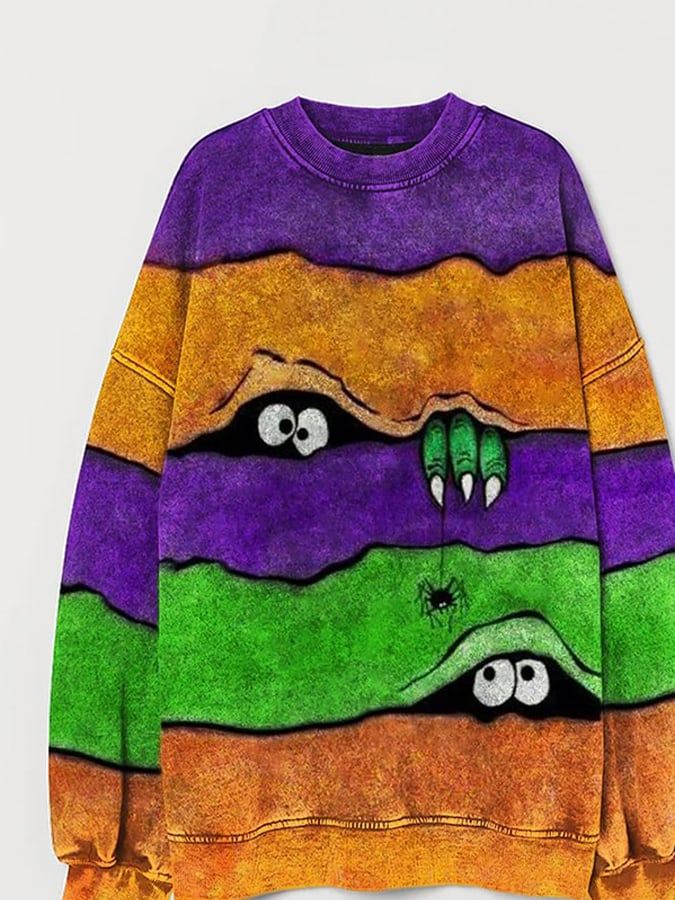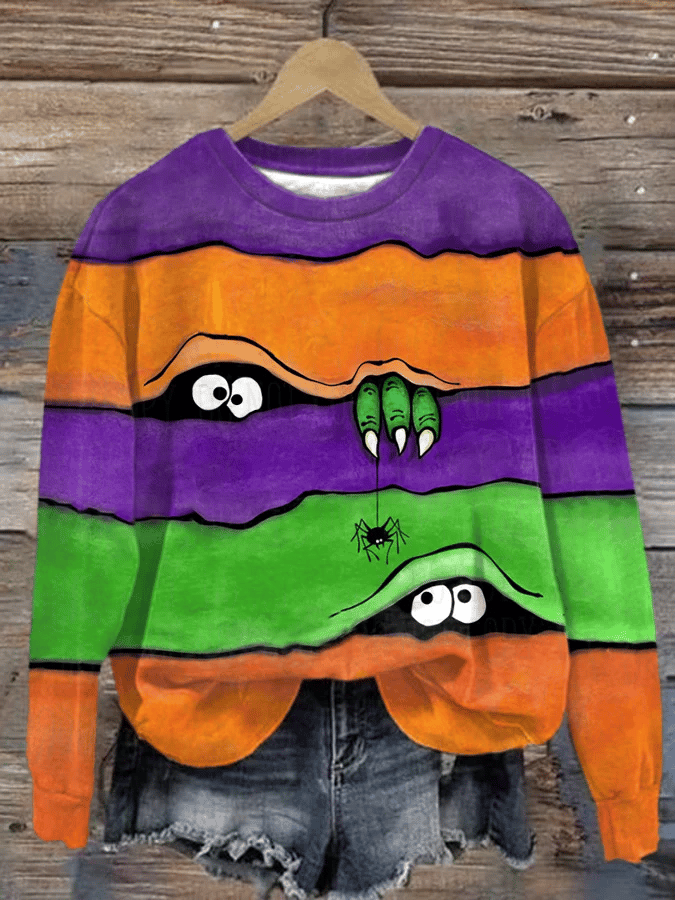 Women's Casual Halloween Peek Monster Print Long Sleeve Sweatshirt