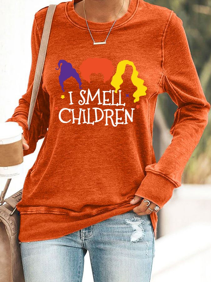Women'S Casual I Smell Children Print Long-Sleeved Sweatshirt