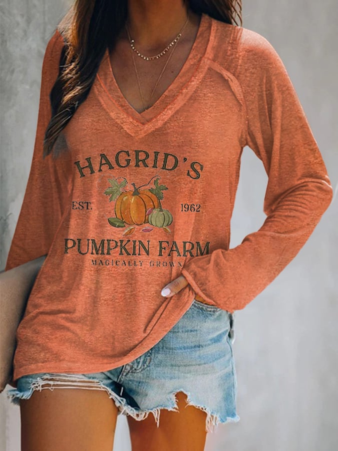 Women'S Hagrid'S Pumpkin Patch Print Long Sleeve T-Shirt