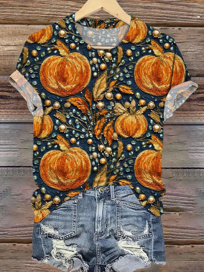 Women's Halloween Pumpkins Print Shirt