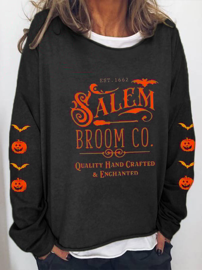 Women's Halloween Salem Broom Co Casual Long-Sleeve T-Shirt