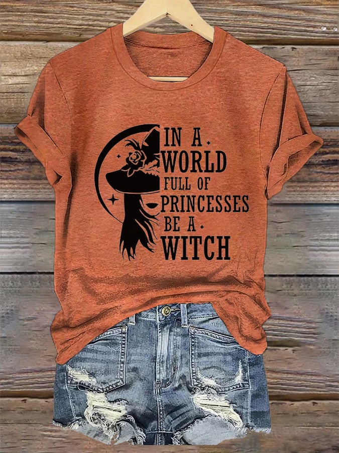 Women's In A World Full Of Princesses Be A Witch Printed T-Shirt