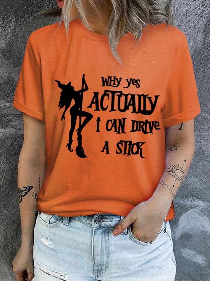 Women's Why Yes Actually I Can Drive A Stick Print T-Shirt