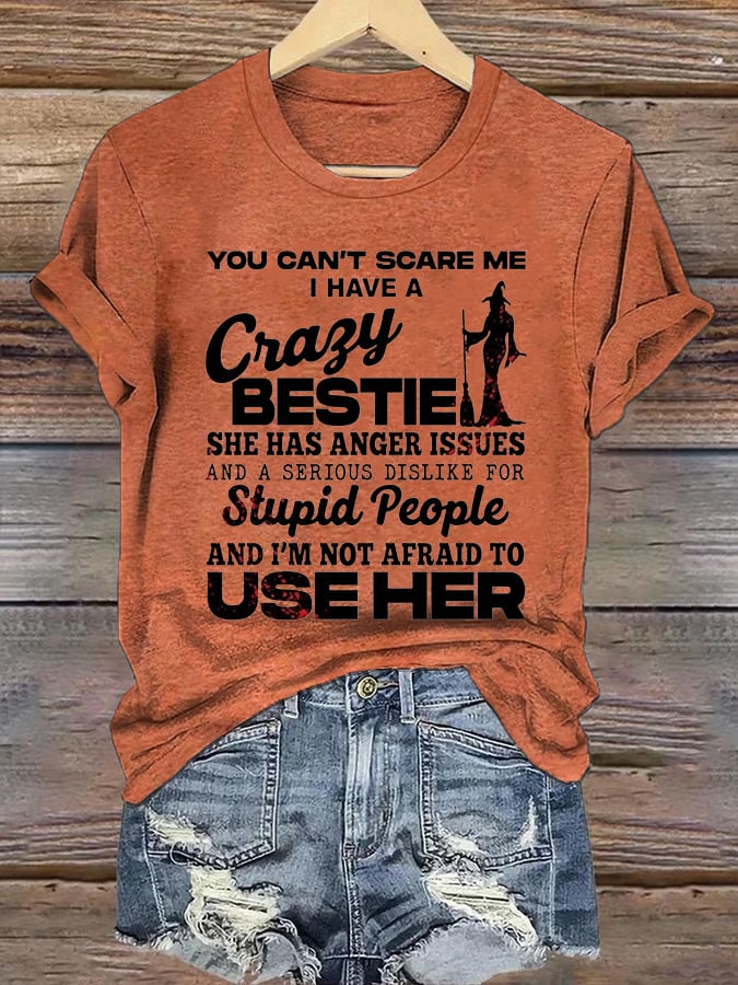 Women's You Can'T Scare Me I Have A Crazy Bestie Print Casual T-Shirt